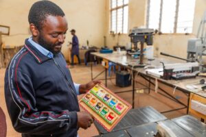 Their debut product was the Incubrooder — an automated egg hatching and chick brooding system that helps improve survival rates for chicks in small farms. That alone was a win for rural agri-entrepreneurs. But they did not stop there. In 2022, they built a custom CNC milling machine to manufacture aluminium moulds for plastic injection, producing essential kits that support Kenya’s Competency-Based Curriculum. The real turning point came about when the team repurposed their existing machinery to craft wooden educational toys from plywood—handson learning tools designed to align with CBC standards. This led to the founding of KIY Toys Limited, a subsidiary of Plotus Innovation Company Limited. With the national shift from rote learning to hands-on, competency-based education, the CBC system created a demand for learning tools that promote creativity, critical thinking, and problem-solving, yet most CBC-aligned educational materials in the market were either expensive imports or generic tools poorly suited to Kenyan cultural and linguistic contexts.
